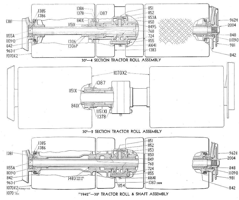 | Plate 6 | 30"-4 Section Tractor Roll Assembly , 30"-2 Section Tractor Roll Assembly , "1942"-30" Tractor Roll & Shaft Assembly |