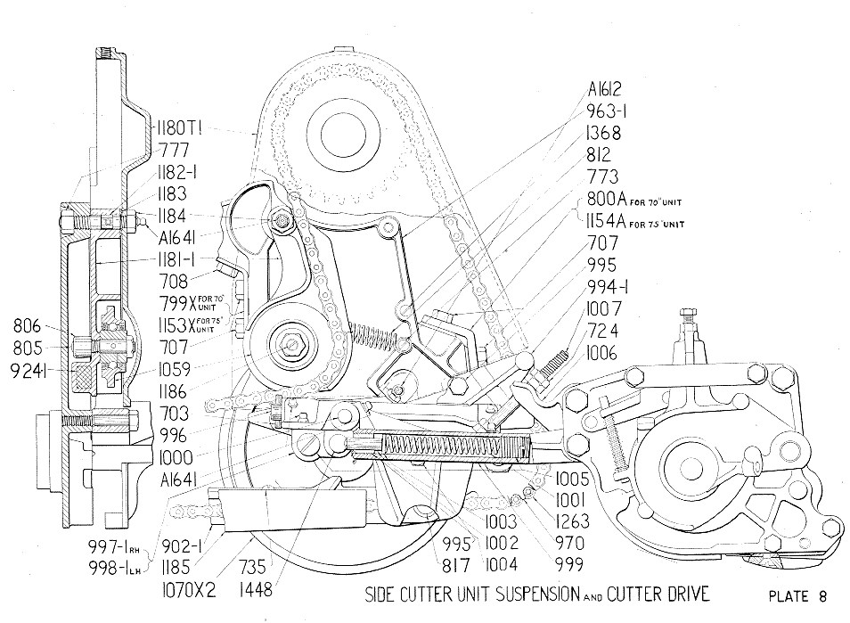 | Plate 8 | Side Cutter Unit Suspension and Cutter Drive |