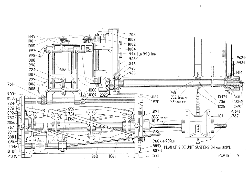 | Plate 9 | Plan of Side Unit Suspension and Drive |
